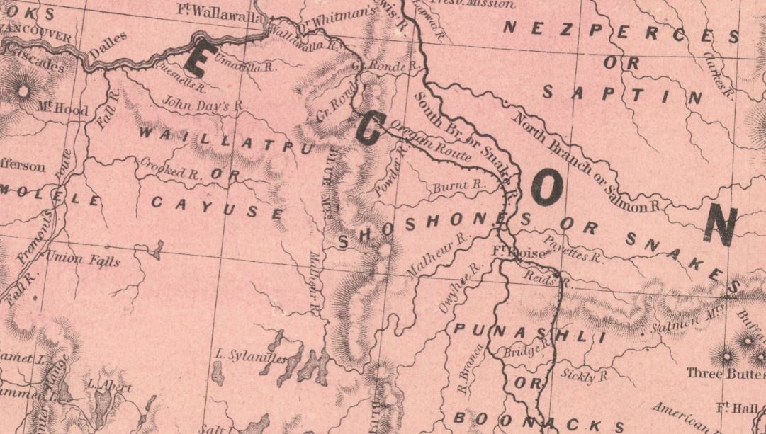 This map is also distinct in the large number of Indigenous groups it recognizes throughout each territory. Unlike other maps from this time and earlier that depict the territory of Indigenous groups as small or insignificant, the way they are labeled here indicates an acknowledgment of the true size of these groups’ land claims, such as with the Shoshone in the Oregon Territory shown above. This, paired with the apparent accuracy of the placement of the majority of these labels, provides insight into the distribution of Indigenous populations at this time and how their communities were impacted by the Treaty of Guadalupe Hidalgo.